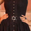 Crafted from soft 30’s cotton sheeting, the dress comes with a detachable waist belt and silver mushroom buttons, adding structure and versatility. Whether styled casually or dressed up, this piece is a timeless wardrobe essential.