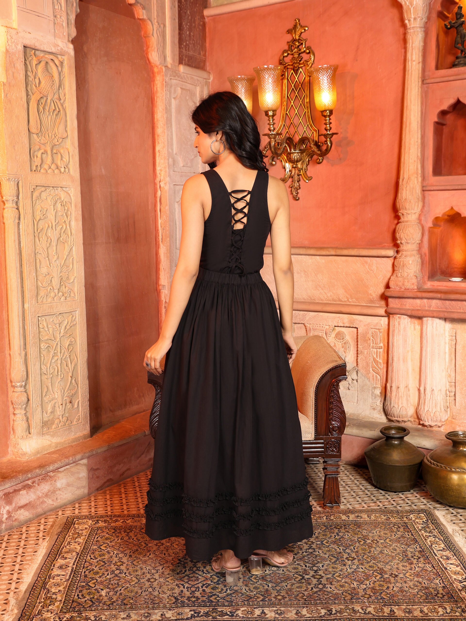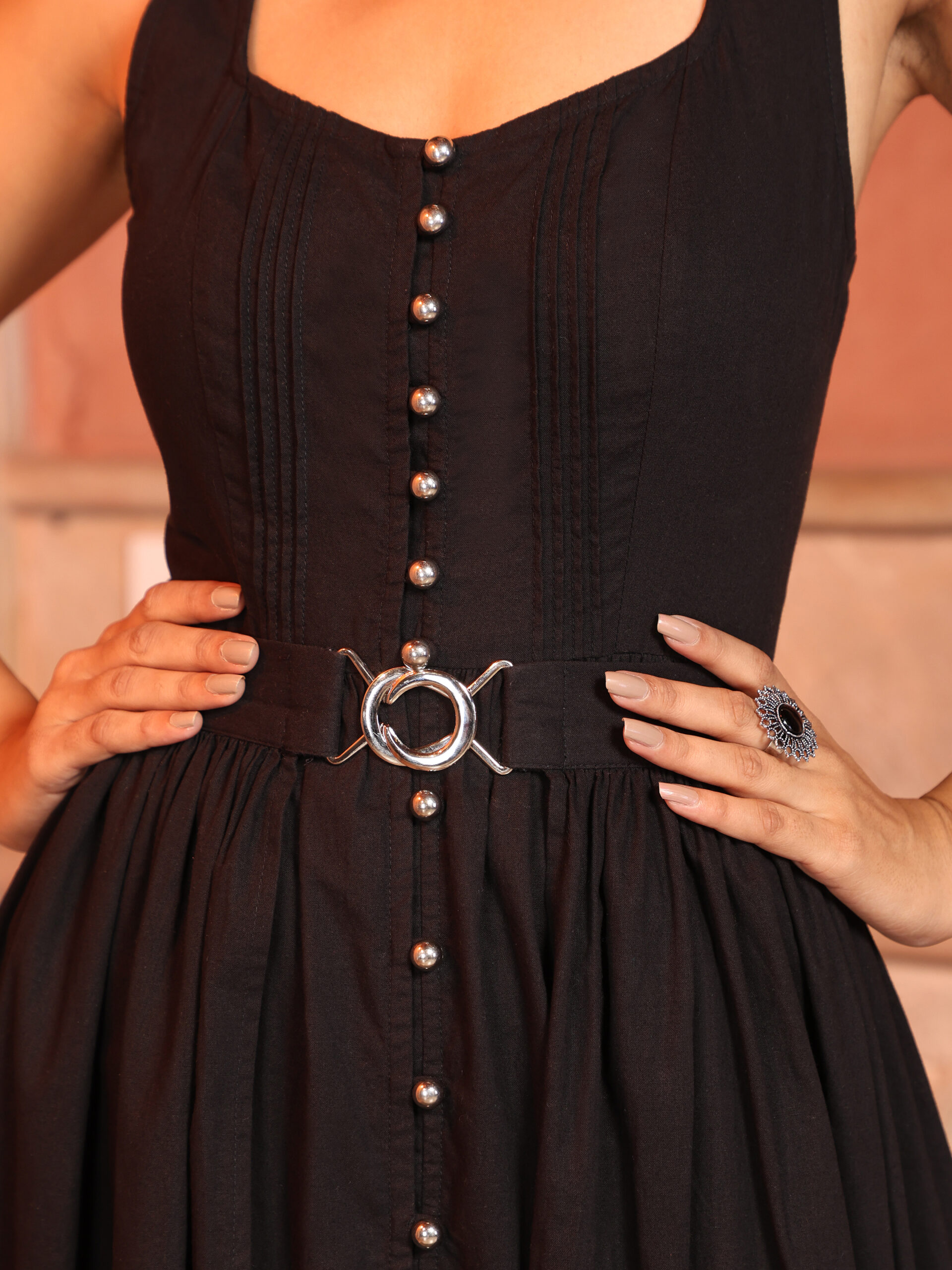 The Aquamarine double flared dress is designed to make everyday dressing effortless yet impactful. Featuring a clean round neckline and sleeveless design, the dress offers a flattering double-flared silhouette that moves beautifully with every step.