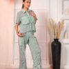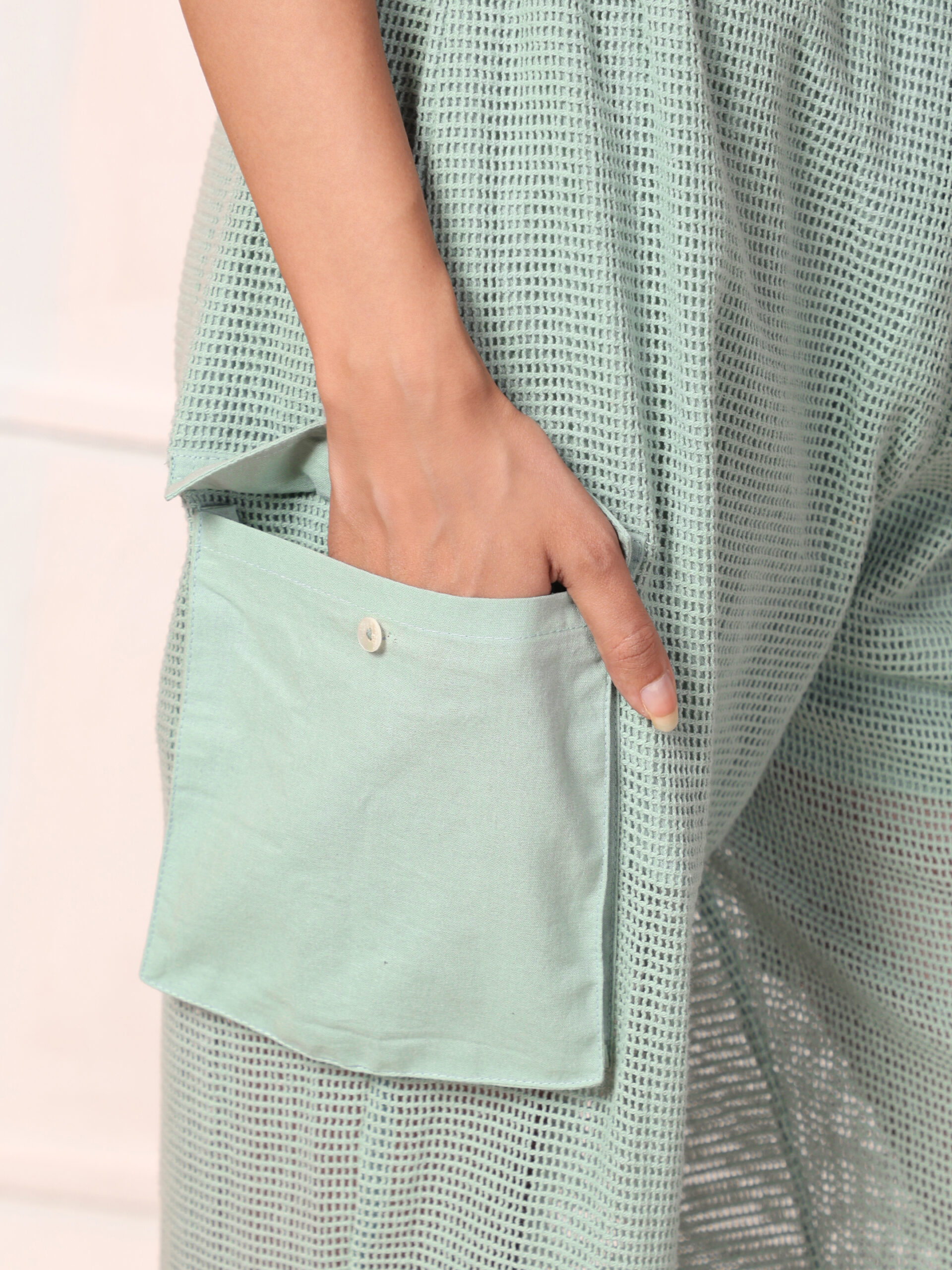 Crafted from airy cotton net and fully lined with soft cotton seating, the set strikes the perfect balance between breathable ease and everyday structure. Thoughtful detailing, including shell buttons, lends a subtle tactile charm, making it a go-to for elevated casual dressing.